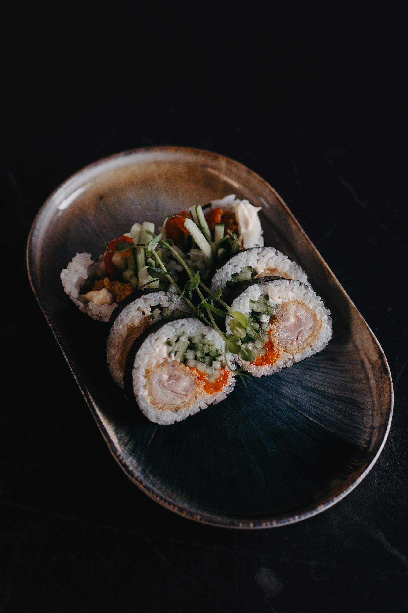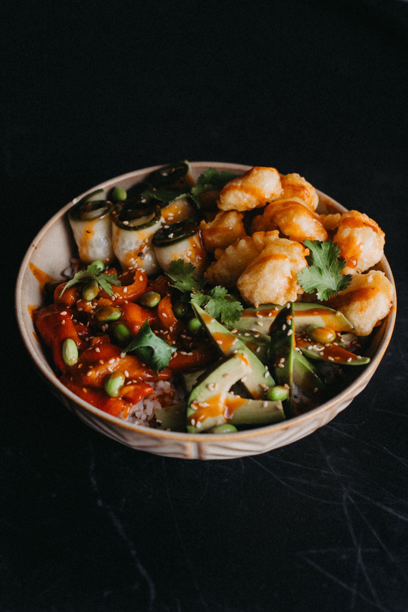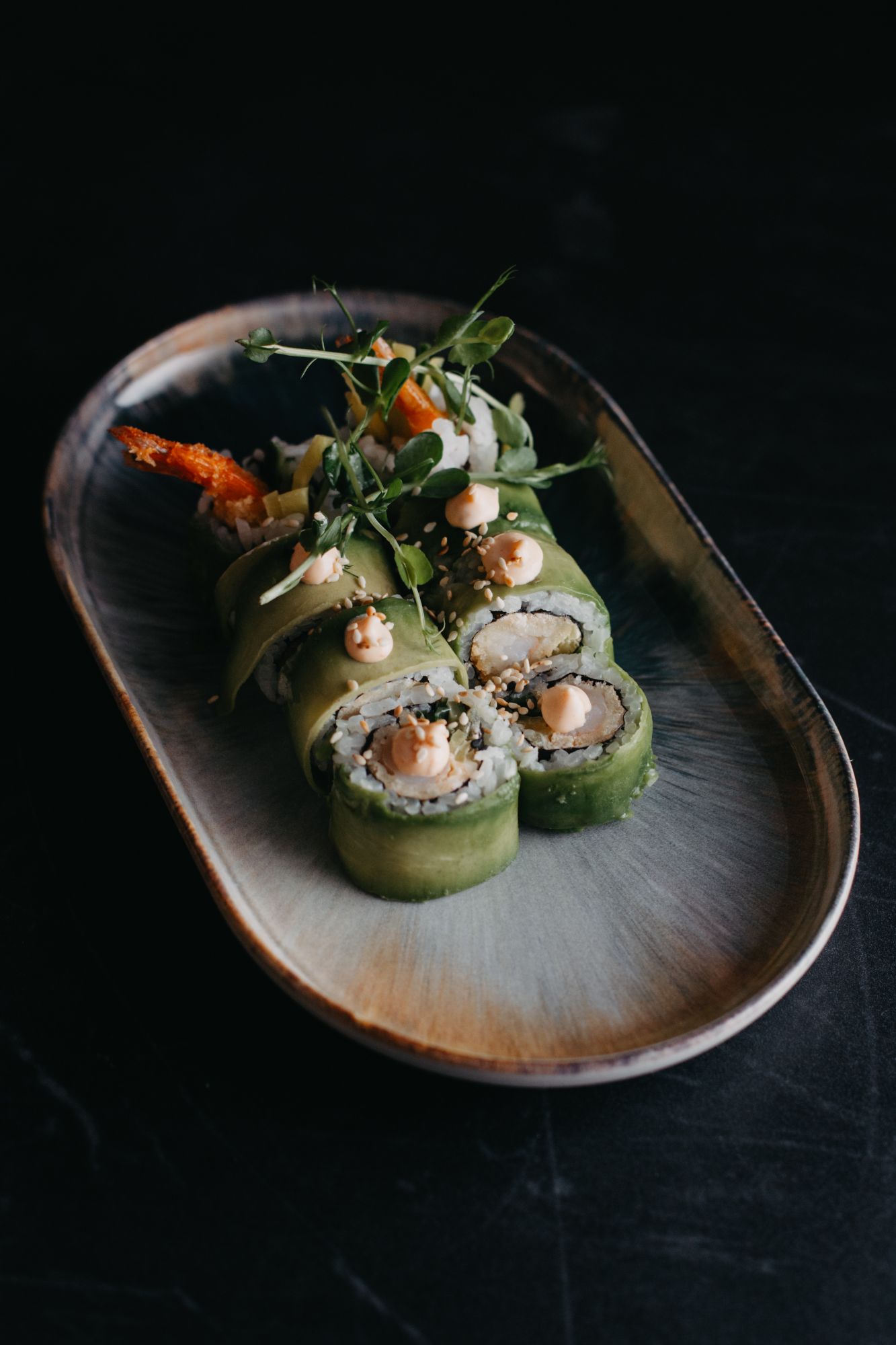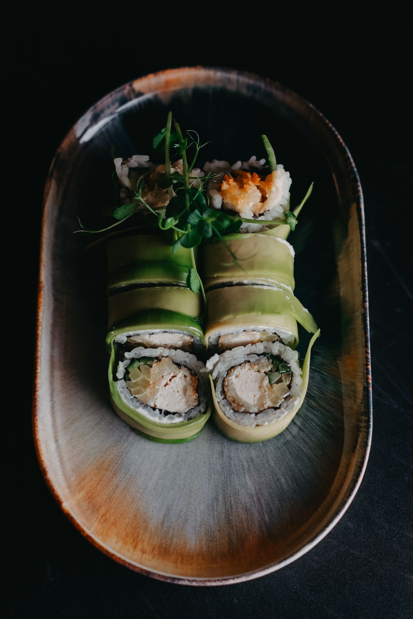 Dragon tofu tempura - ostry vege mayo/ogórek/oshinko - awokado na zewnątrz