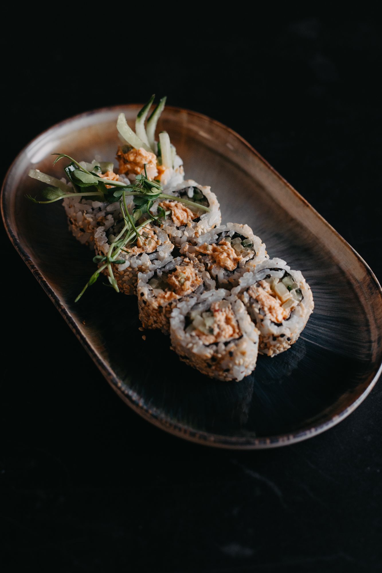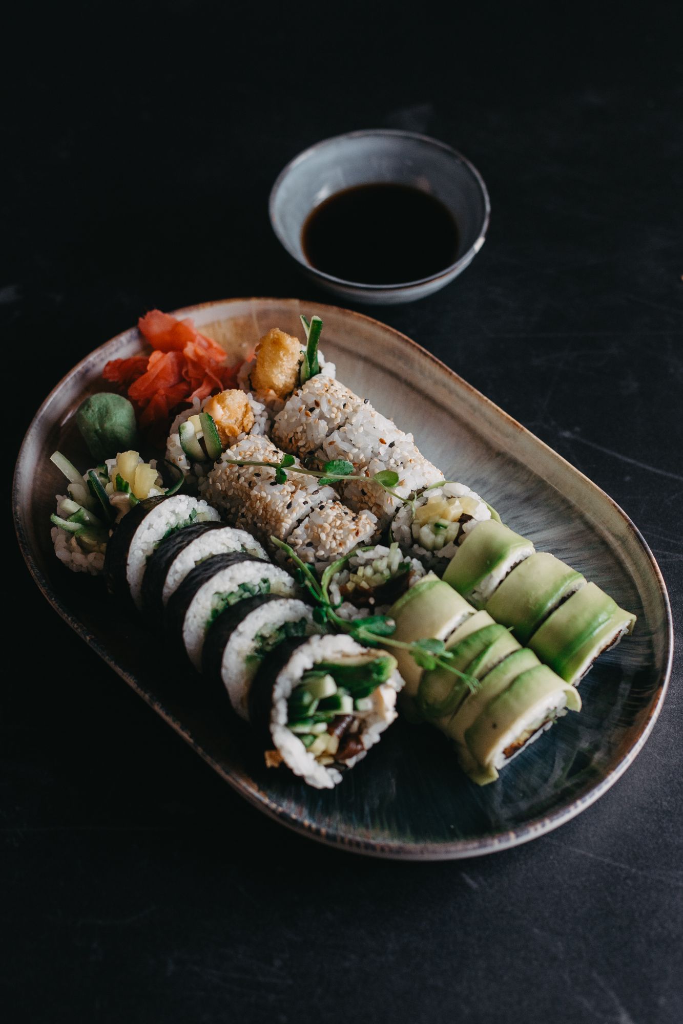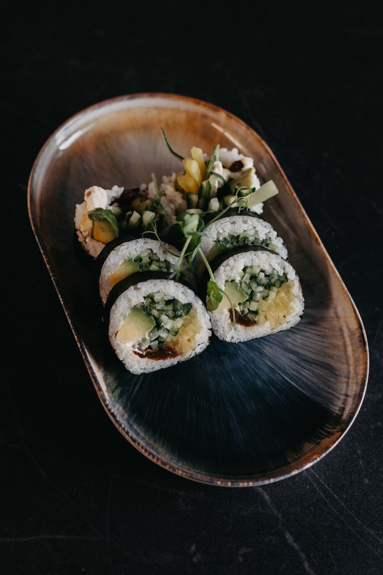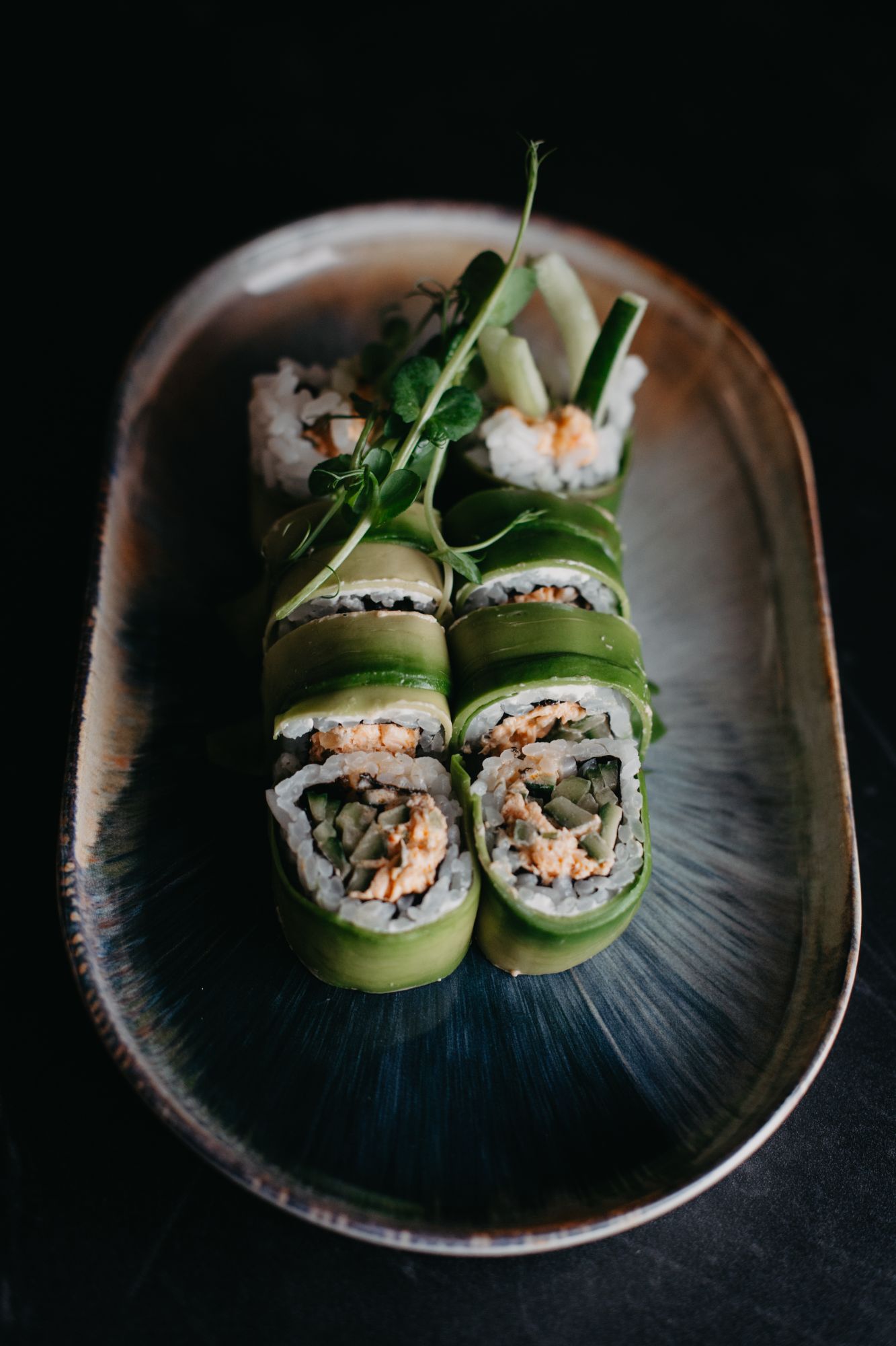 Dragon tofu tempura - ostry vege mayo/ogórek/oshinko - awokado na zewnątrz