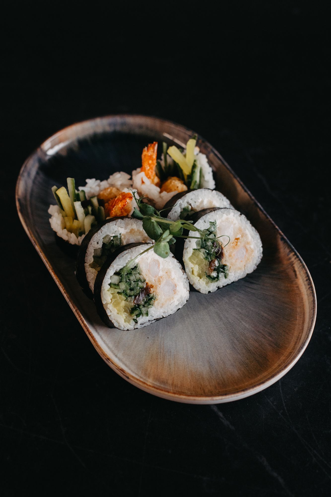 Futomaki krewetka tempura - sałata/serek/ogórek/oshinko/tykwa