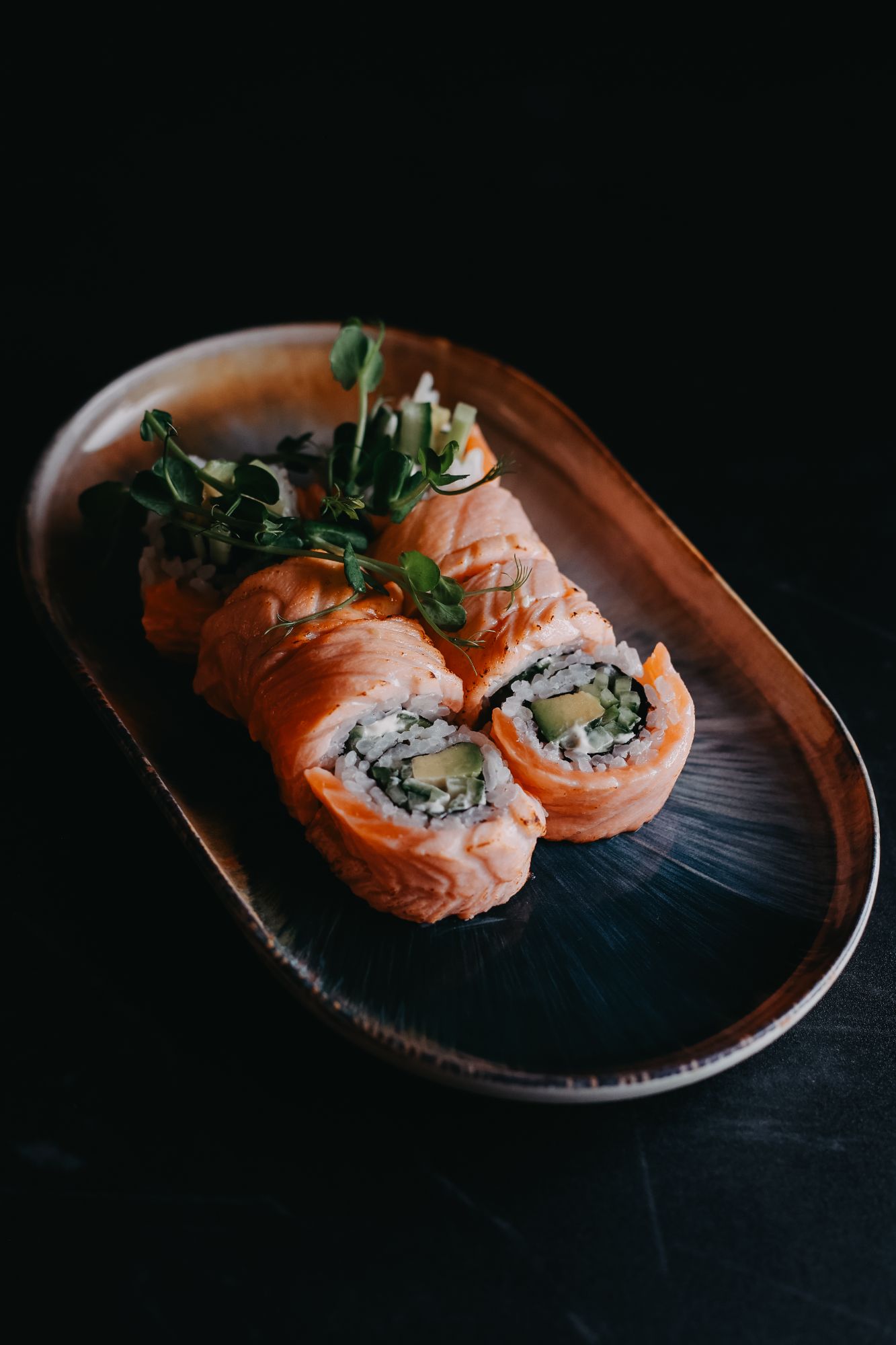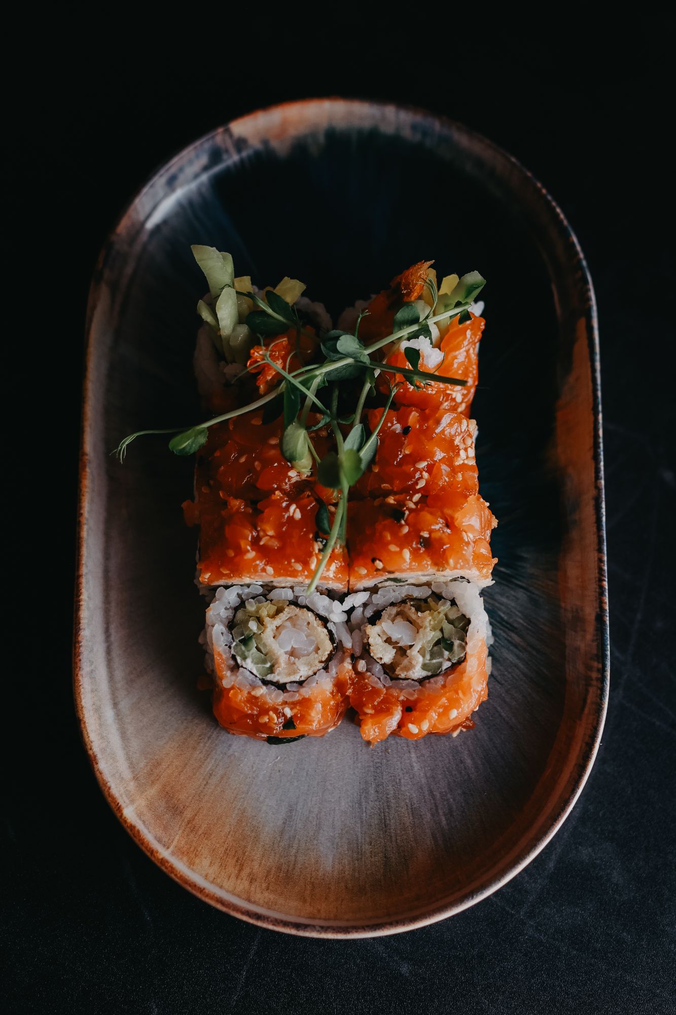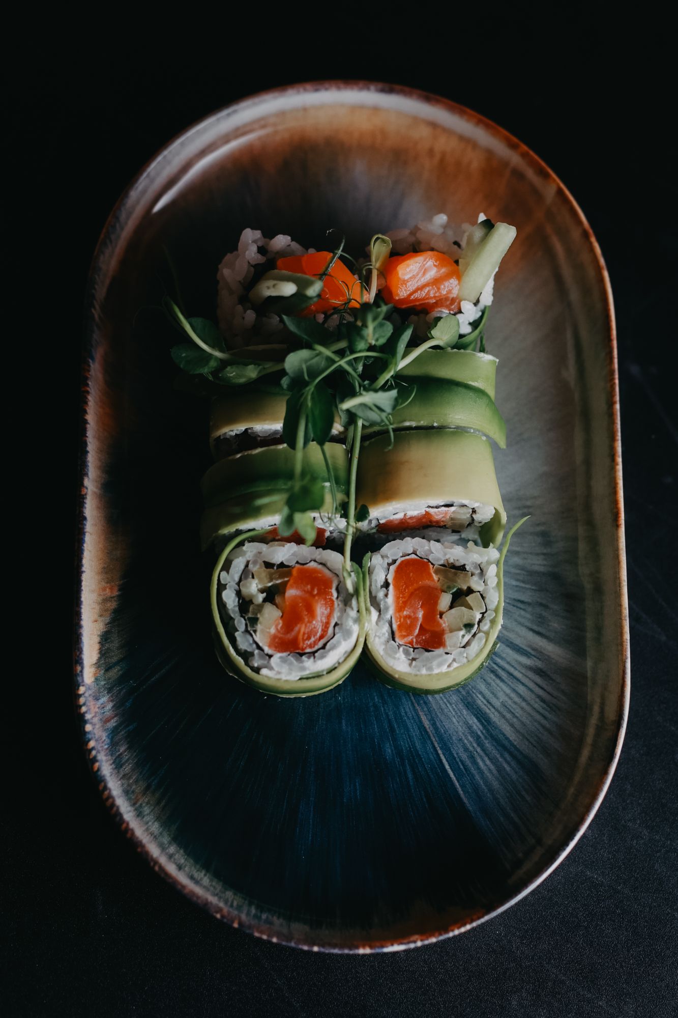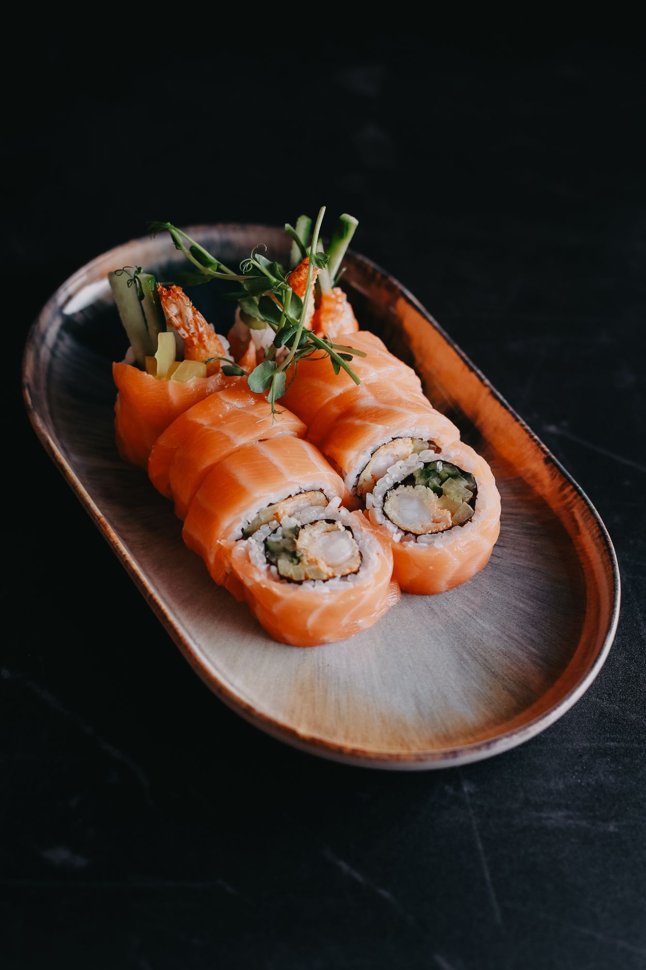 Dragon z pastą z pieczonego łososia - ogórek - awokado na zewnątrz -
